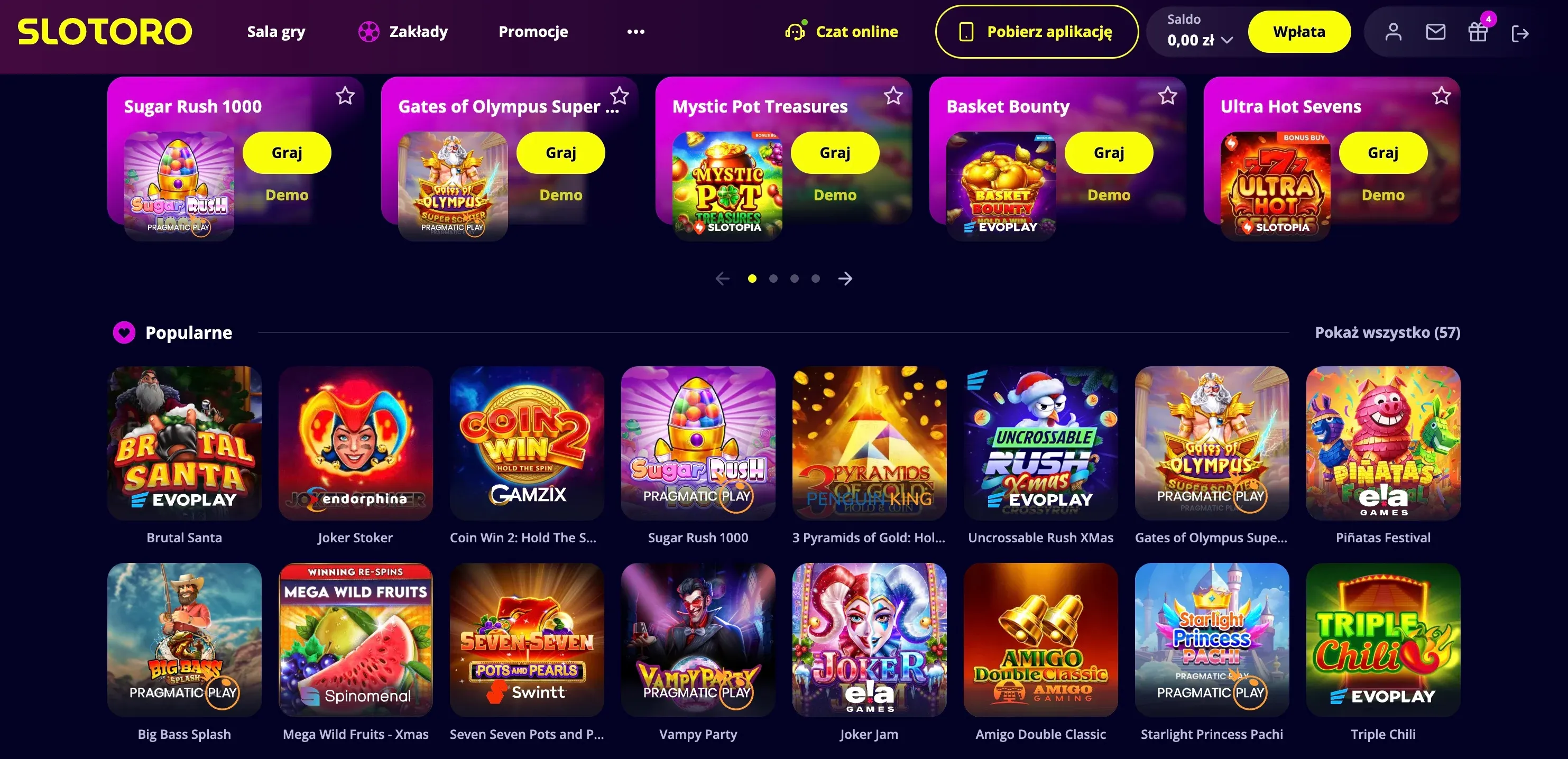 Slotoro Casino, uruchomione pod koniec 2025 roku przez Wiraon B.V., to nowa platforma hazardowa online z licencją Curaçao. Kasyno to wyróżnia się hojną ofertą powitalną, 10-poziomowym programem lojalnościowym i szerokim wsparciem dla kryptowalut. Z biblioteką kilku tysięcy gier od ponad 50 dostawców, Slotoro ma na celu przyciągnięcie szerokiej bazy graczy dzięki swojej elastyczności i agresywnym promocjom.