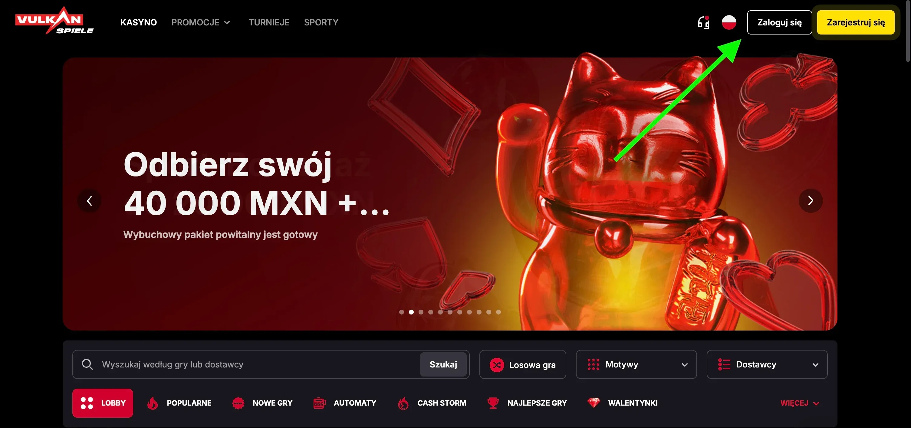 Krok 1: Wejdź na oficjalną stronę Vulkan Spiele
