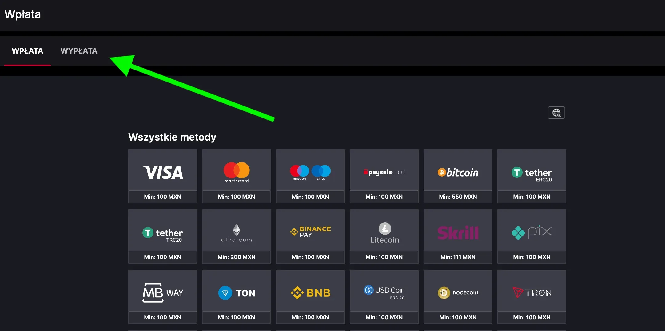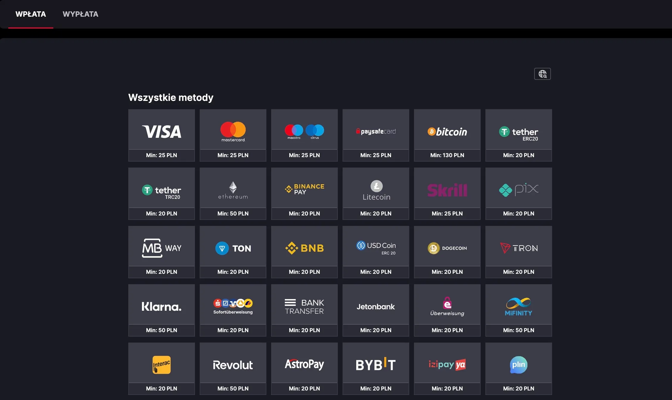 4.Wybierz preferowaną metodę płatności spośród dostępnych opcji (np. przelew bankowy, e-portfele jak Skrill/Neteller, karty kredytowe, czy kryptowaluty).